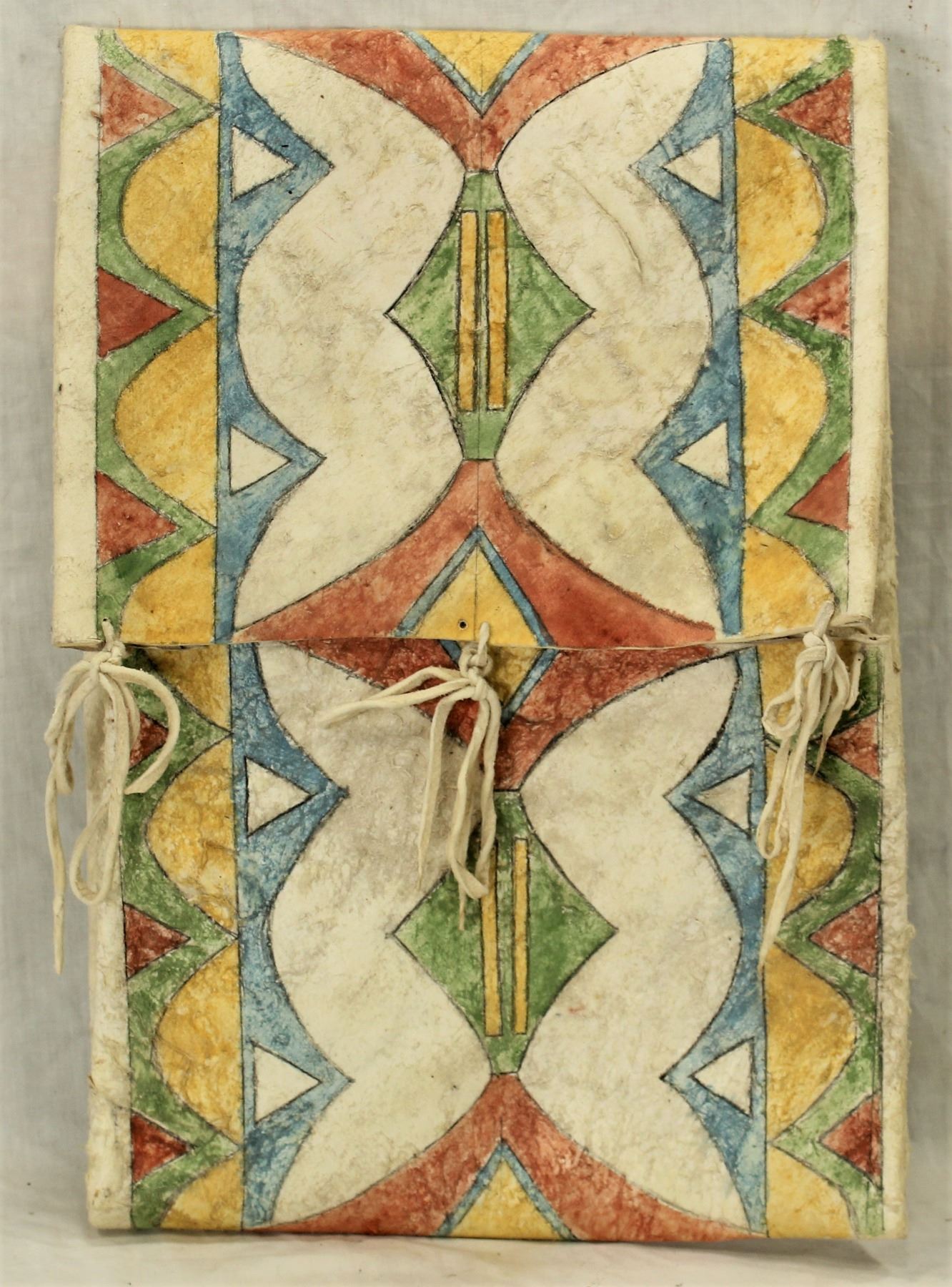 Bright colored rawhide folded envelope with great design. Measuring 14"x 20".
