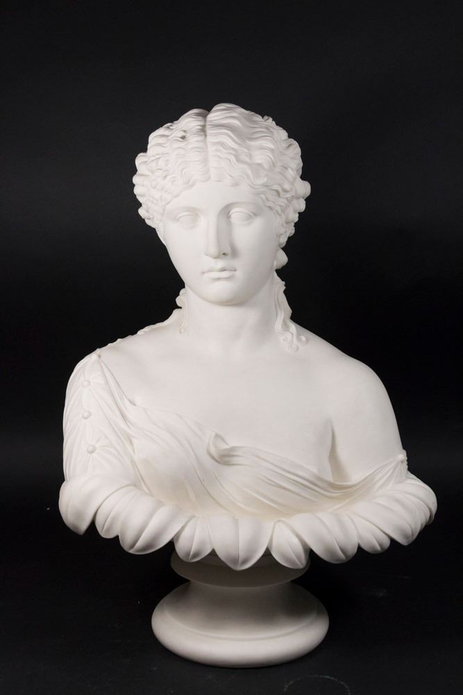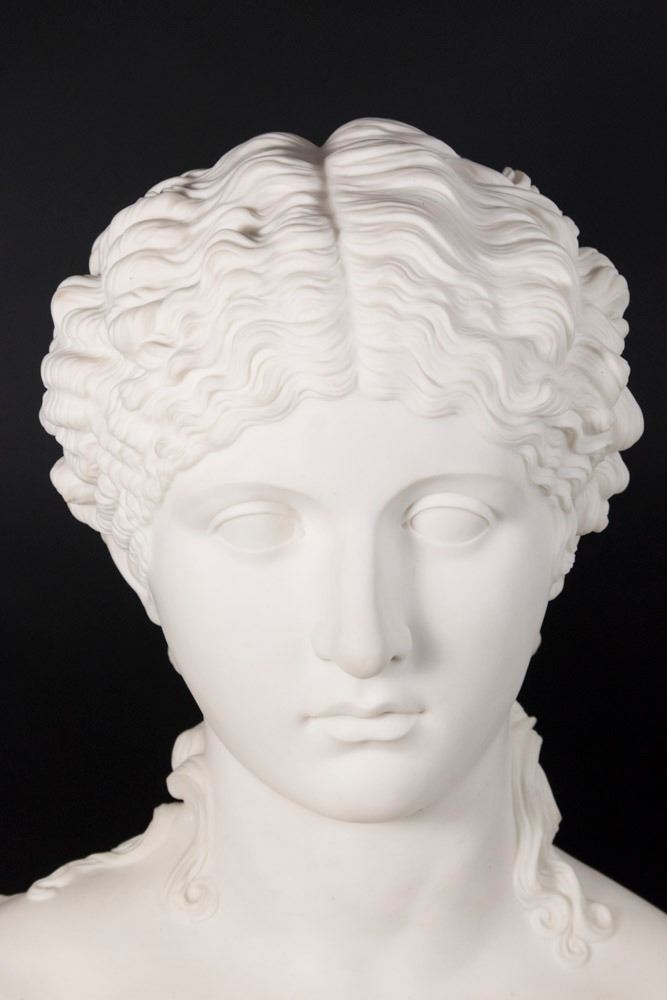 Parian Bisque Bust, Classical Maiden in Lotus Leaf