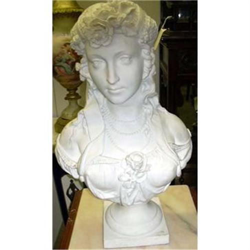 Here is Cressida from Greek mythology in victorian white Parian ware. She was the lover of a Trojan prince Troilus, but deceived him with Diomed. Chaucer and Shakespear used this legend in their plays. This beautiful piece of art is signed, but it is difficult to read. I believe the signature is "P,H,Le Liboy"