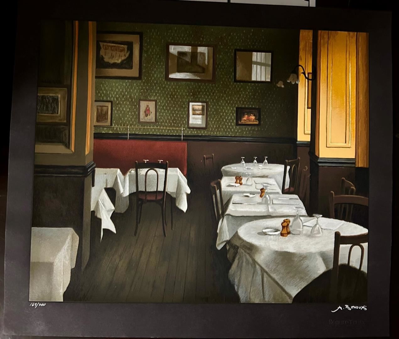 A serigraph on black arches paper. Image size 18.5x22 on paper 21.8x25". Renoux was well-known as a painter of Paris.
