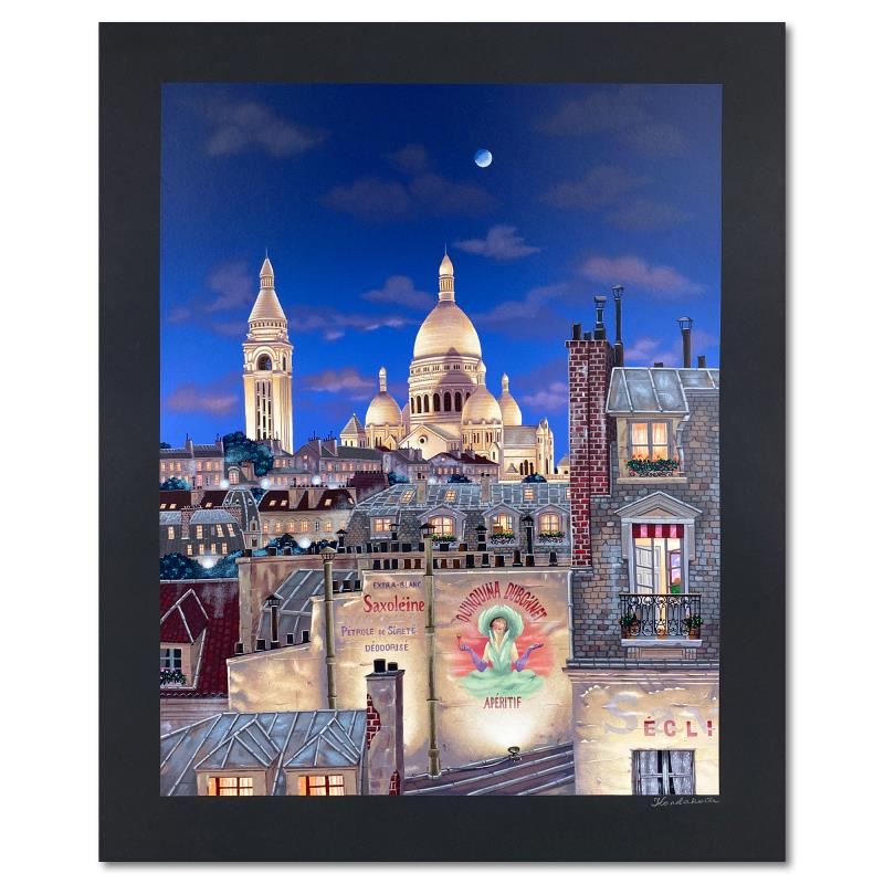 "Paris Evening (Rooftops of Paris)" is a limited edition serigraph on paper by Liudmila Kondakova, hand signed by the artist. Includes Letter of Authenticity. Measures approx. 31" x 25" (border), 25.5" x 20" (image).