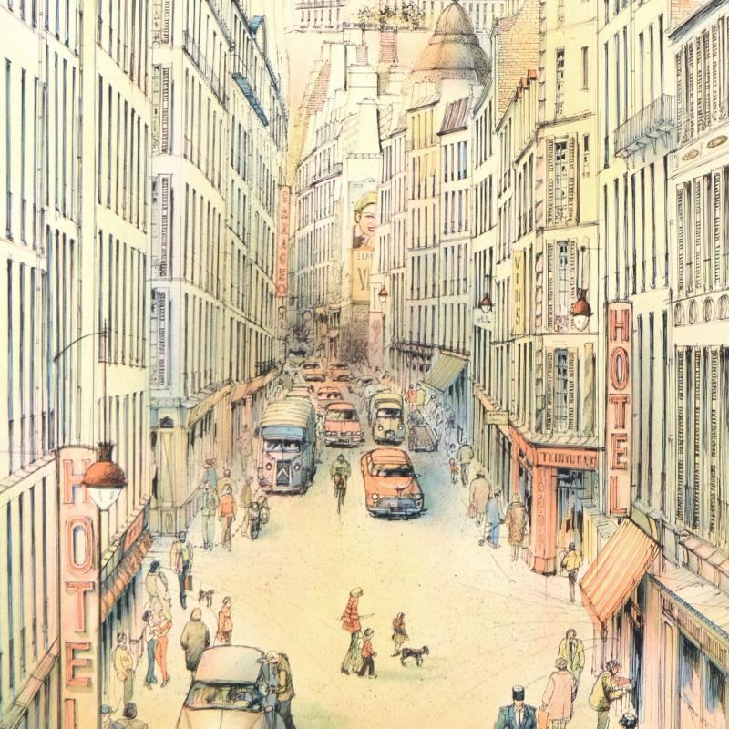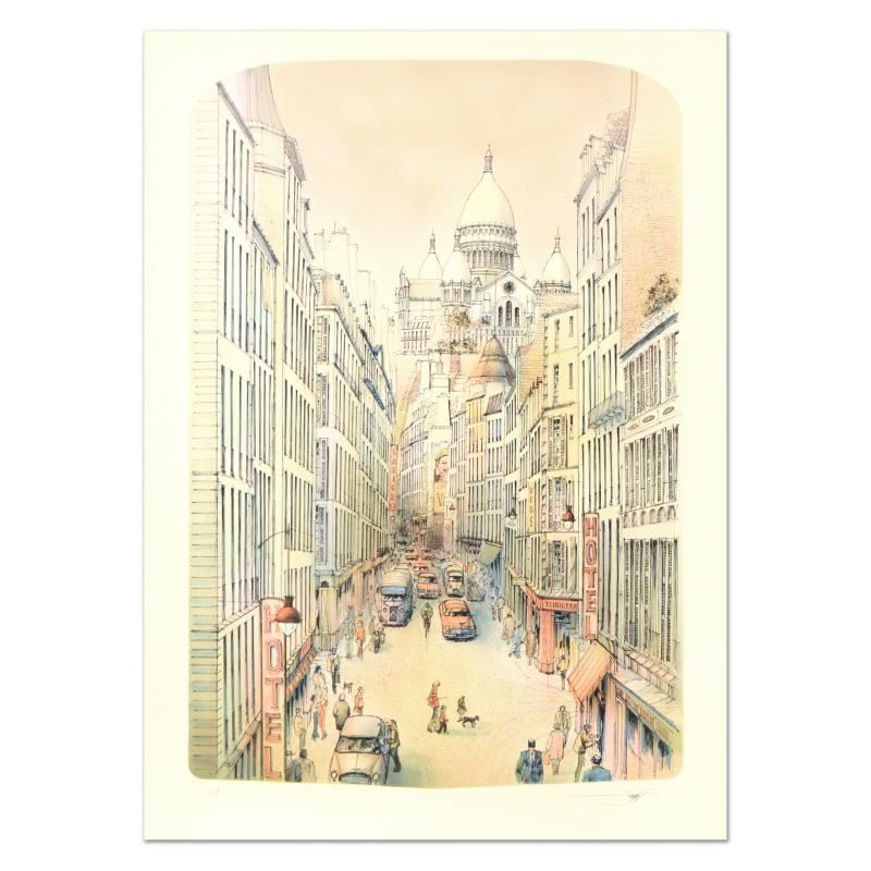 "Paris II" is a limited edition lithograph on paper by Rolf Rafflewski, numbered and hand signed by the artist! Measures approx. 22" x 30" (border). 18.5" x 27" (image).