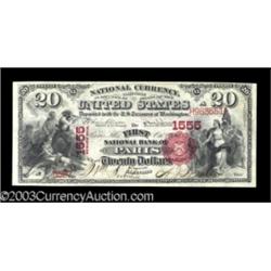 <TABLE cellSpacing=0 cellPadding=0 width="100%" bgColor=#000000 border=0><TBODY> <TR><TD width="100%"><TABLE cellSpacing=1 cellPadding=3 width="100%" border=0><TBODY><TR><TD width="100%" bgColor=#79735c><FONT face=arial color=#ffffff size=3><B>Description</B> </FONT></TD></TR><TR><TD width="100%" bgColor=#ffffff><FONT face=arial size=2><B>Paris, IL</B></I> - $20 1875 Fr. 431 <B>The First NB</B></I> Ch. # 1555<BR>We have maintained for many years that First Charter Twenties are among the most underrated and undervalued of all National types, but it is only when a note like this appears that one truly realizes just how uncommon these items really are, especially in the very highest grade ranges. This note is absolutely gorgeous, with a vivid red overprint, bright paper, and bold pen signatures between four margins that are more than adequate to carry the Gem grade. The reverse is simply extraordinary, with the heaviest inking we have ever seen on any note of this type, making the green virtually iridescent and allowing the central vignette of the Baptism of Pocahontas to take on an almost three dimensional appearance. If you are searching for a truly exceptional First Charter $20 for your type set, this is a note you should bring home this evening. <B>Gem Crisp Uncirculated.</B></I> (9,000-12,000 ) </FONT></TD></TR></TBODY></TABLE></TD></TR></TBODY></TABLE><BR><TABLE cellSpacing=0 cellPadding=0 width="100%" bgColor=#000000 border=0><TBODY><TR> Important notice: Heritage usually auctions material at the rate of 200-250 lots per hour. On some occasions eBay Live bid software or the Internet may not be able to keep up with the pace of the auction. We recommend placing a realistic absentee bid now as insurance to avoid disappointment. Occasionally the auctioneer may eliminate or reject an eBay Live bid, and the auctioneer may also reopen a lot after the close of the eBay live bidding (usually because we missed an audience bid), and may reject your bid even if it shows you as the winning bidder. By bidding via eBay Live, you agree that Heritage may award the lot to another bidder at its sole discretion under the circumstances described above or any other reasonable circumstances. Also please note that all Heritage lots purchased through eBay Live carry a 20% Buyer's Premium. Please make sure you read the Terms and Conditions before you bid.</TR></TBODY></TABLE>