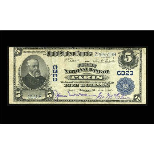 <B>Paris, KY</B></I> - $5 1902 Plain Back Fr. 598 <B>The First NB</B></I> Ch. # 6323<BR>This was the only issuer of Third Charter notes located here. While this is hardly a rare bank, tonight's offering is a solid <B>Very Fine</B></I> that still retains the often faded purple stamped signatures.