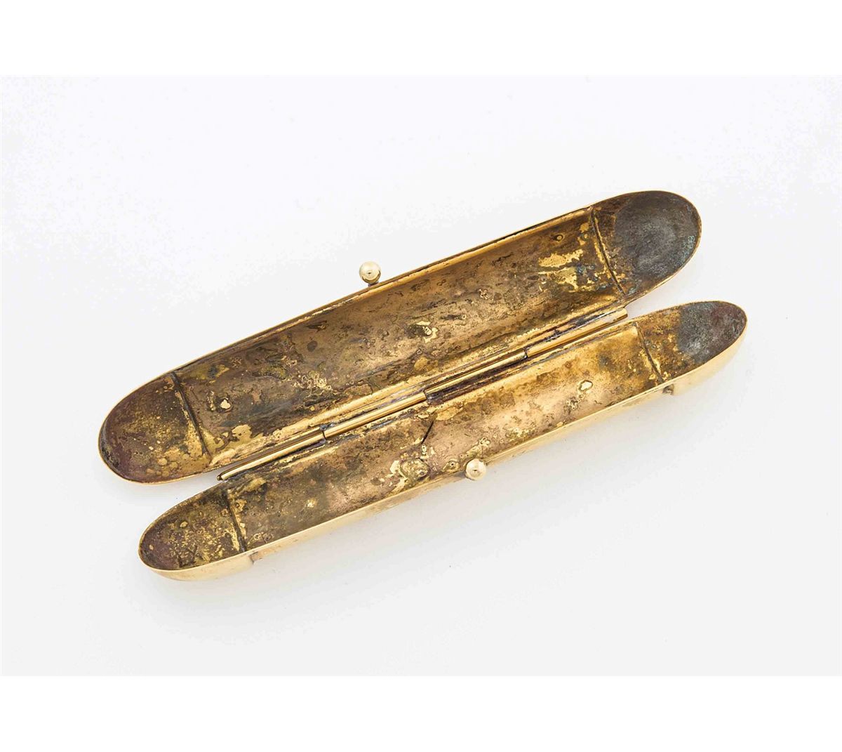 Very nice hand-engraved brass cigar holder from the 1924 Summer Olympics held in Paris. Holder measures 4.5? long, and is hand-engraved on one side, “Paris 1924,” and “VIII Olympiad,” on the other side. Some scattered light surface marks and tarnishing to the inside from use, which may very well polish out, otherwise fine condition. Olympic items of such quality are seldom offered for sale.