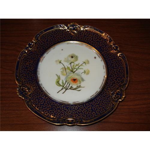 A Beautiful Soft Paste Porcelain Plate, Circa 1835, by Paris Porcelain, of Paris, France. The Shaped "Bleu-du-Roy" border decorated with vermiculation in fine Gilt, the Edge with Rocailles and the Center Reserves painted with Highly Detailed and Shaded Floral Specimens, Very Similar to those in the Botanical Catalogs of Pierre Joseph Redoute, of the time. This Plate is in Excellent Condition, with No Chips, cracks or Breaks. Some Slight rubbing to the interior Gilt-work, in the Expected areas of a Piece of this Age. The Back in marked with an incised lower-case "n" and the Characteristic prong indentations from the firring process.