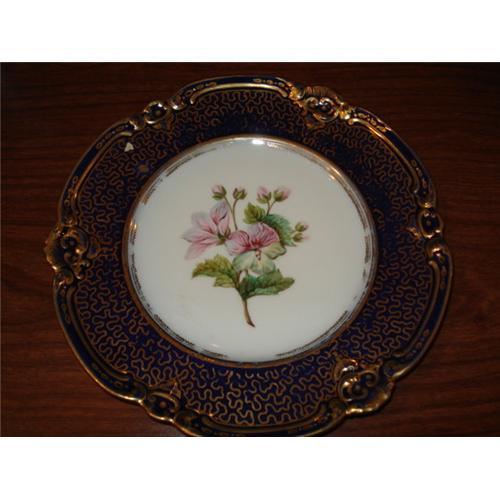 A Beautiful Soft Paste Porcelain Plate,Circa 1835, By Paris Porcelain, of Paris, France. The Shaped "Bleu-du-Roy" border Decorated with Vermiculation in fine Gilt. The Edge with Rocailles and the Center Reserves painted with Highly Detailed and Shaded Floral Specimens, Very Similar to those found in the Catalogs of Pierre Joseph Redoute, of the time. This Plate is in Excellent Condition, with no Breaks, chips or cracks. Some slight rubbing to the interior Gilt work, in the expected areas of a piece this age. The Back is Marked with an incised lower case "n" and the Characteristics prong indentations from the firring process. Please See my other Listings for Companion Plates.