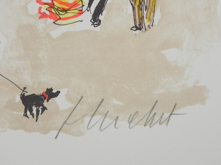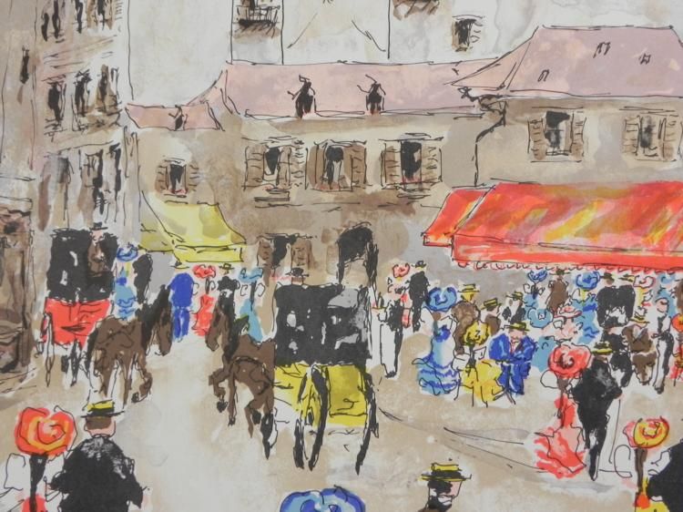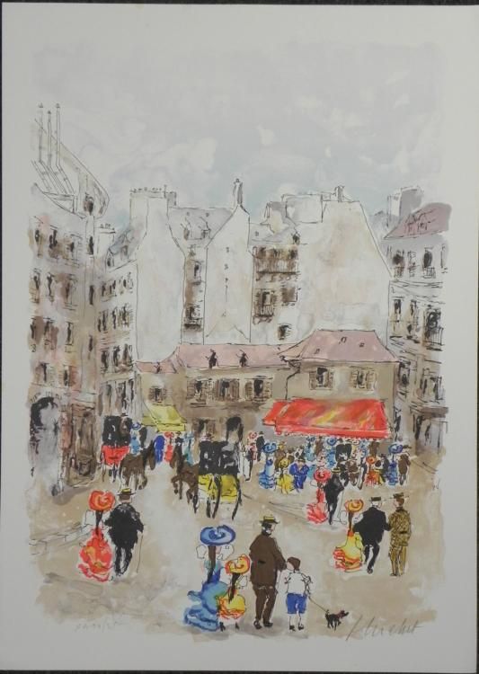 Artist: Urbain HuchetTitle: Paris Scene * Medium: * Litho print on paperSignature: Signed by artist, * lower rightEdition: European artist proof numbered 20/25, lower left * Size: 21 1/4" x 29 1/2" * Condition: Very good; minor staining to margin that can be framed out * Biography * Urbain Huchet was born in * Rennes April 28, 1930. After law school and a stint in the textile * industry, in 1960 he devoted himself completely to painting already * practiced amateur. Self-taught painter, he settled for three years in * Pont-Aven in the footsteps of Gauguin and Emile Bernard, the latter much * influence he painted many landscapes and characters typical of this * region particularly involved. * * His works are typified by a fluid and * free gestural approach to both form and color, and they are immediately * recognizable. He is adept at both painting on canvas and * watercolor, and is an accomplished lithographer. His subjects * are diverse, but are primarily a reflection on the landscape of the * Brittany regions as he has profound love for the * coast. * * *Retrieved from: * http://bio.parkwestgallery.com/artists/Urbain-Huchet * *
