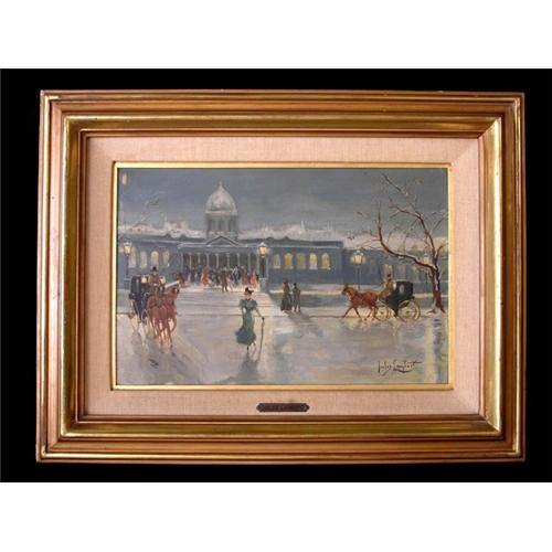 </font></strong>Charming oil painting of a Paris street scene in winter, at dusk, when building and street lights are lit and the last traces of natural light disappear. Signed on lower righ Jules Lambert. One of a pair listed separately. In good used condition with minor signs of wear as shown. Please ask questions, request additional photos and shipping costs before buying.