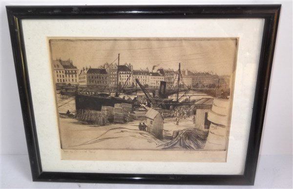 Paris engraving titled "Pont Du Carrousel" by E.T. Howes 1904. 13 inches x 10 inches.