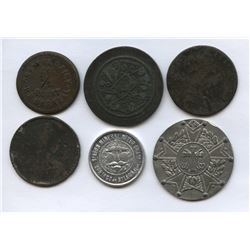 Spinner token, Fischer Hotel, Hamilton; Calendar token, Orange Grand Lodge, Encased 10 cent of H.J. Carmichael; General encased 1929