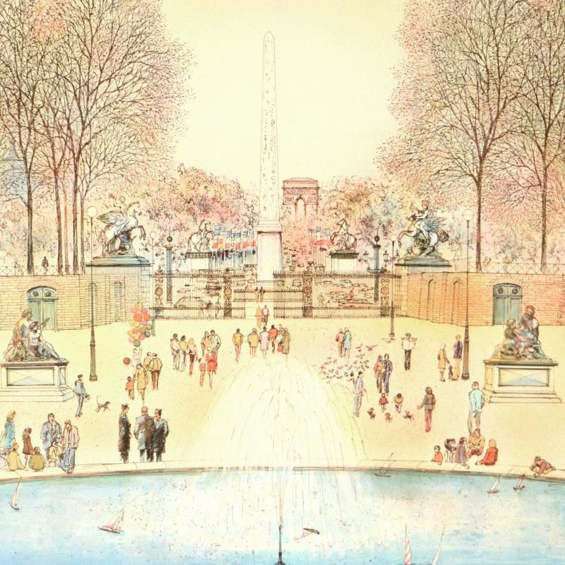 "Park II" is a limited edition lithograph on paper by Rolf Rafflewski, numbered and hand signed by the artist! Measures approx. 29.5" x 19" (border). 27" x 19" (image).