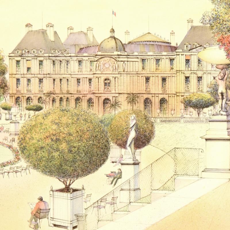 "Paris III" is a limited edition lithograph on paper by Rolf Rafflewski, numbered and hand signed by the artist! Measures approx. 30" x 22" (border). 27" x 19" (image).