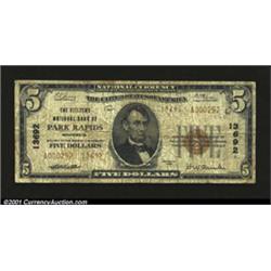 Park Rapids, MN - $5 1929 Ty.<p>2 The Citizens NB Ch. # 13692Just seven notes and an uncut sheet are listed on the census for this late-entry Hubbard County bank. Nice and dirty Very Good. Important notice: We expect to be auctioning lots at the rate of 200-250 per hour. Sometimes eBay Premier live bid software cannot keep up with that pace, so we strongly recommend that you place a realistic proxy bid now as insurance to avoid disappointment. Also please note that all Heritage/CAA lots purchased through eBay Premier carry a 20% Buyer's Premium.
