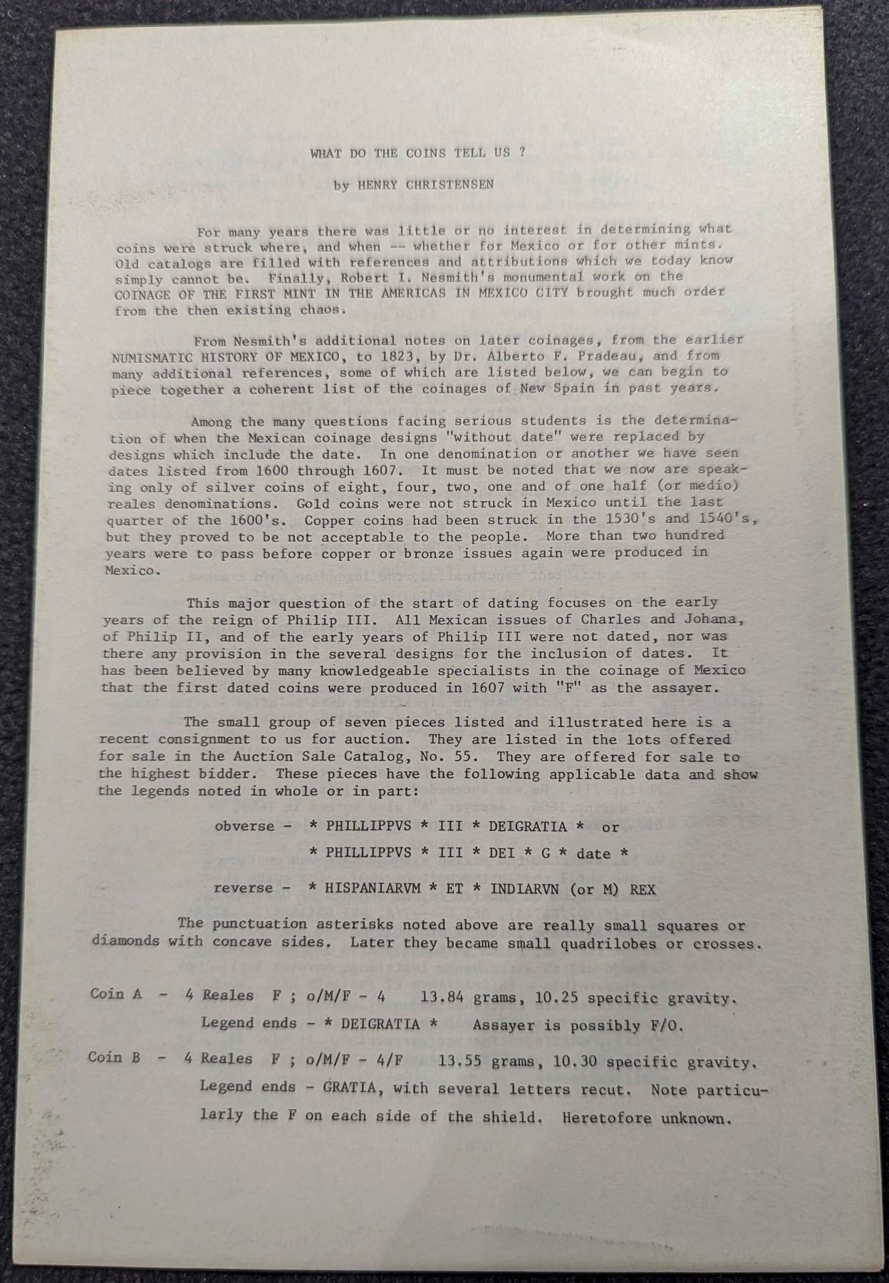 Parke-Bernet Galleries Inc. TREASURES OF THE SPANISH MAIN. Parke-Bernet Galleries Inc. 1967. oblong 12mo. 40 pages. New York. first edition. original pictorial card covers. illustrated. near Fine. A promo booklet to illustrate the fabulous treasures offered for sale by Parke-Bernet Galleries on February 4, 1967. Includes a history of the fleet wreck, subsequent salvage efforts and photos of artifacts and coins. [with] 'What do the Coins Tell Us' article by Henry Christensen. 3 pages. 1 b&w plate. Fine. A short article on reading cob coins. Lot weight: 0 lbs 4oz. Subject(s): Spanish Colonial Coinage.