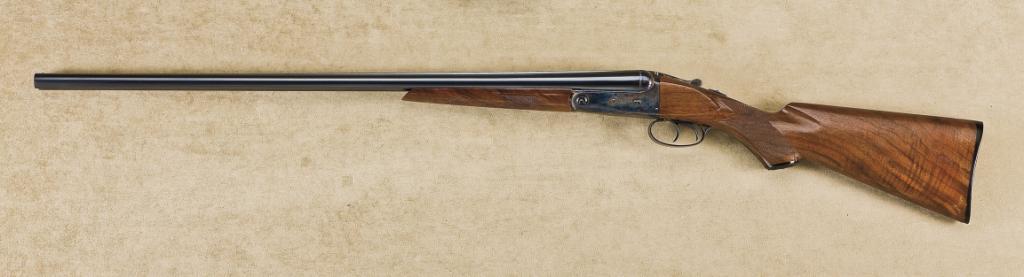 Parker 16ga Trojan-grade double-barrel shotgun with approx. 28” barrels, fully and finely restored and expertly restocked. Serial #201669. The gun shows 98-99% correct type blue and case hardened finish, probably by Pachmayr Los Angeles, along with expertly replaced burl wood stock with fancy checkering. The stock measures 14-1/8” to the end of the wood, 14-3/8” to the end of the hard rubber Parker recoil pad. The edges are crisp, the interior near excellent. A restoration of this quality is approx. $2,000 on today’s market. Est. $8,000 - $16,000