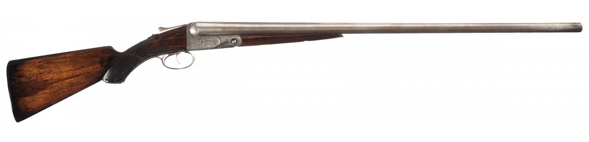 Condition: Very good. The barrels retain 60% of the Damascus pattern showing strong traces of original brown finish remaining in the protected areas with the balance a smooth gray patina. The receiver retains strong traces of original case colors in and around the protected areas with the balance a smooth gray patina. The wood is fair with a number of minor handling marks and a crudely repaired break in the wrist. The markings are clear. Mechanically fine.