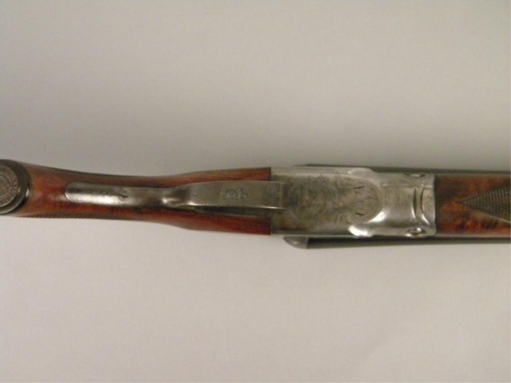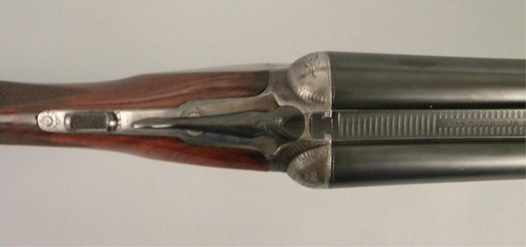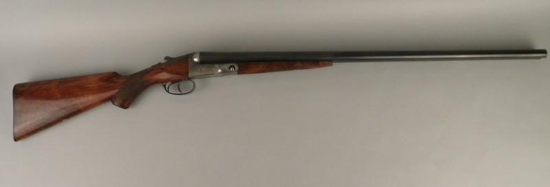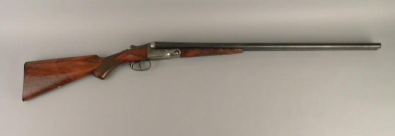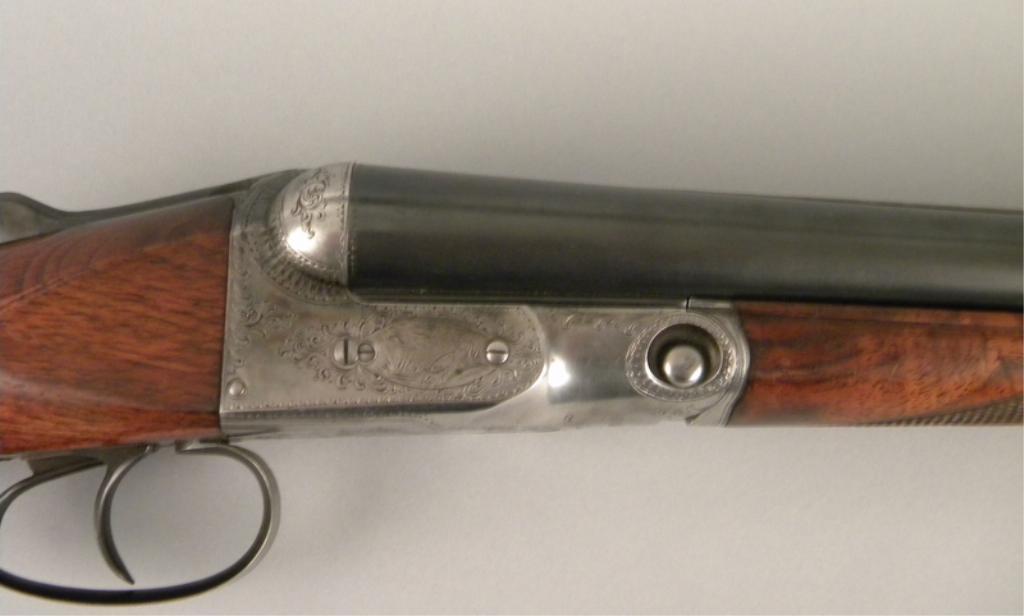 Parker GHE-grade 12ga double-barrel shotgun, 30” barrels, double triggers, auto ejectors, serial number “236968”. Made circa 1933, on 1-1/2 frame. Right barrel choked .025 modified, left barrel .037 full. The barrels show Parker special steel marking on rib, the bottom of breech marked Parker overload proved. The right barrel is marked “HT/A”, “PS” in a circle with a numeral “3” and the numerals “12”. The rear lug is marked “12” and “1-1/2”, indicating frame size. The barrels retain approx. 90-95% original blue with some slight thinning at the edges, slight scratches, and just beginning age. The frame shows 20-40% case hardening, lightly cleaned in some areas to natural metal, some areas of minor erosion and pin prick pitting and some bright hardening where protected, particularly under the lever and on the inside of the action. The stocks are good to very good with some scratches and mars to the varnish, some slight wear to the edges of the checkering but still very sharp with just some normal ages and minor bruises from use. The original buttplate is retained, the gun is mechanically sound, the bore is still bright. Est.: $1,500-$3,000.