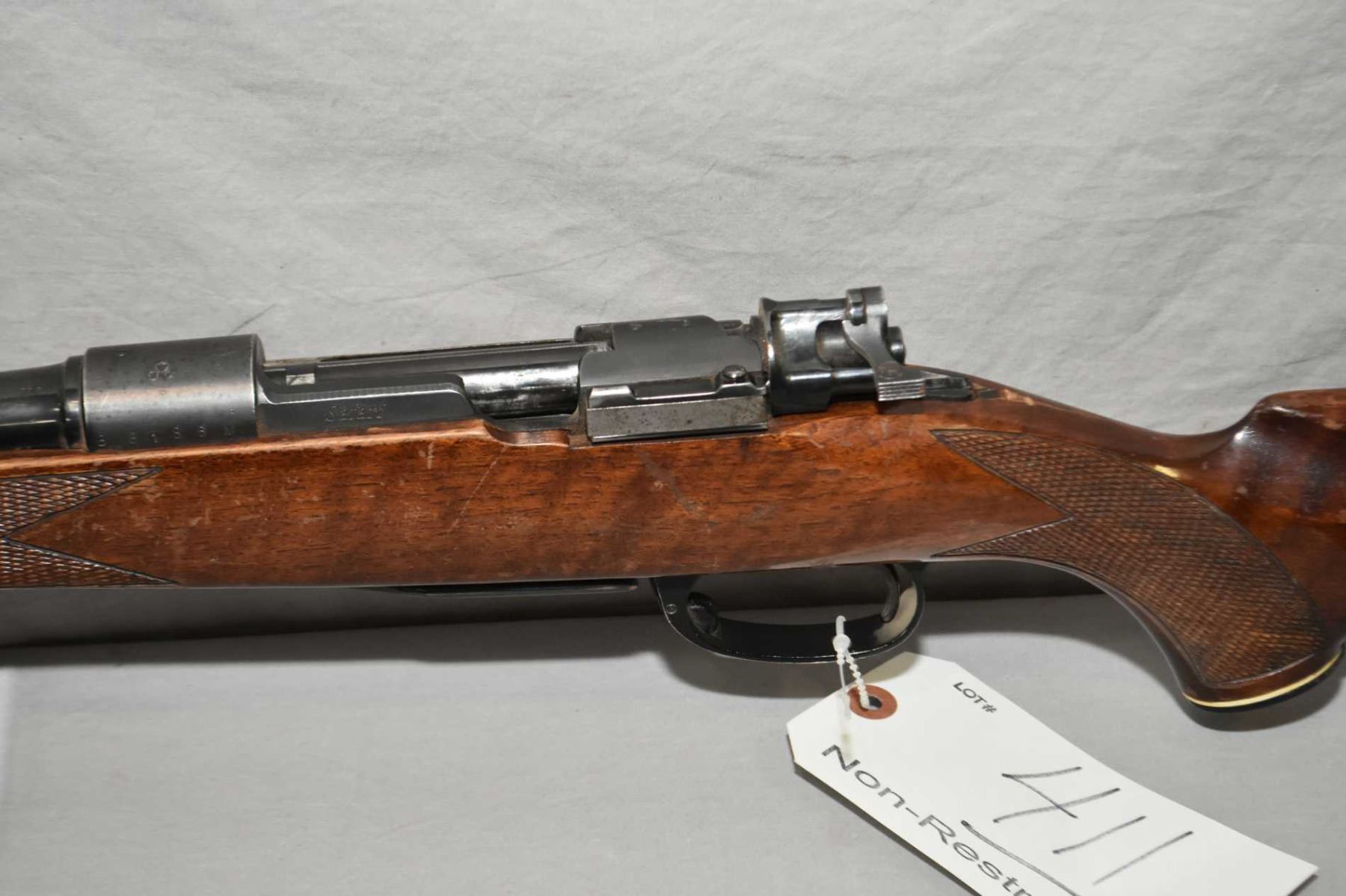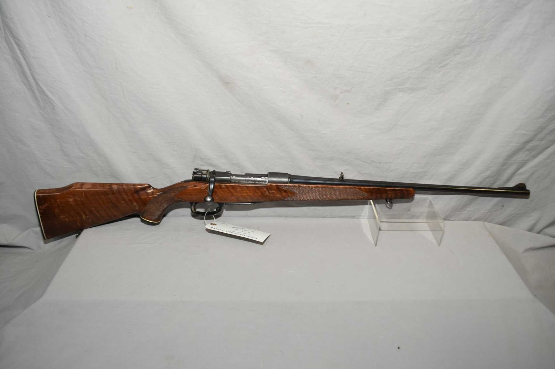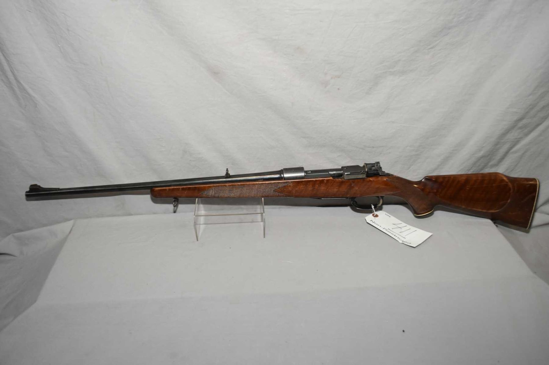Parker Hale Model Safari .30 - 06 Sprg Cal Mag Fed Bolt Action Rifle w/ 22" bbl [ fading blue finish, some marks, barrel sights, checkered pistol grip stock and forend, with scratches, marks and flaking varnish, Parker Hale butt plate, sling swivels ] Ser # B8186M