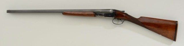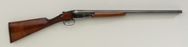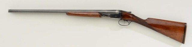 Parker V Grade SxS hammerless shotgun, 20 gauge, 23-1/2” barrels, double triggers, 13-1/4” from front trigger to wood, 13-3/4” to butt pad, blue finish, checkered wood butt stock, Decelerator hard rubber butt pad,#118355. This gun is in overall very good condition showing approx. 65% muted blue finish, very good to near fine bores, crisp actions, very good wood stocks with some wear to finish in handling areas and scatteredold mars and scratches from carry and storage. Est.: $600-$1,200.