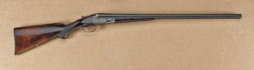 Parker V-grade 12ga double-barrel shotgun. Blue and case hardened finish, standard checkered wood pistol grip stock with hard-rubber buttplate, 28” barrels, standard extractor, double triggers, choked modified (right) improved modified (left). The barrel shows 75-85% original blue, some spotting and light erosion just starting, beginning pitting. The frame shows 20-30% darkening and case hardening, also showing some new rust and just beginning pitting. The stocks are good to very good with some oil staining, normal wear and use. Minor nicks and mars. Original parker buttplate is retained. Action is tight, bores are good. A very shootable and good quality parker. Serial #127725. Est: $1,250 - 2500