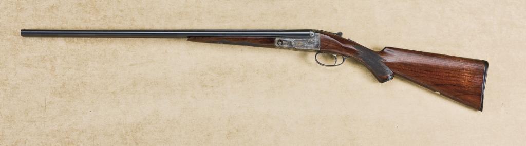 Parker VHE 28 gauge Double Shotgun with Miller trigger, OO lightweight frame, 26” bbls, Parker over -load proofs, serial #215126. The bbls are marked on the underside of breech J.G. in circle-D-G-3 on left and V in circle 2 small 9-, 28 and O on rear lug. The gun remains in near fine condition with 90-95% original blue, a few scratches, toning slightly, 75-85% color-case hardening just beginning to age and dull naturally, 98% blue on trigger guard, wood has been professionally refreshed with no evidence of sanding whatsoever and appears excellent, action tight, bores fine, original Parker butt plate. A Collector’s Grade Parker with desirable features and gauge. Est. $10,000-20,000