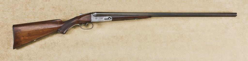 Parker VHE grade 16ga double-barrel shotgun, 28” barrels, “0” size frame serial number “143384”, circa about 1908. Old tag attached reads “right .028 improved modified, left .027 improved modified.” The metal surfaces have been lightly cleaned and the barrels show approx. 30-40% original blue, some brown patina on areas of light cleaning long ago. The frame show 20-30% case hardening drifting to silver with some light cleaning and polishing as do the mounts and trigger guard. The stocks are good with some minor wear to the checkering on the forend, approx 30-50% original varnish evenly wearing, very good wood to metal fit between the frame and stock. The stock is its original length, showing correct buttplate and pistol grip cap. The action is tight, bores are shiny. Est.: $1,500-$3,000