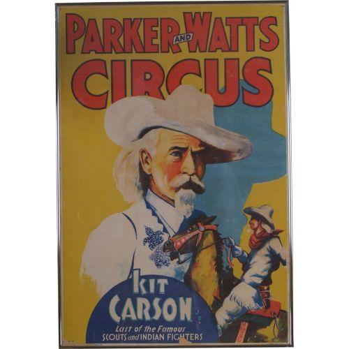 Parker & Watts Circus Poster "Kit Carson" framed & 27 x 40 "
