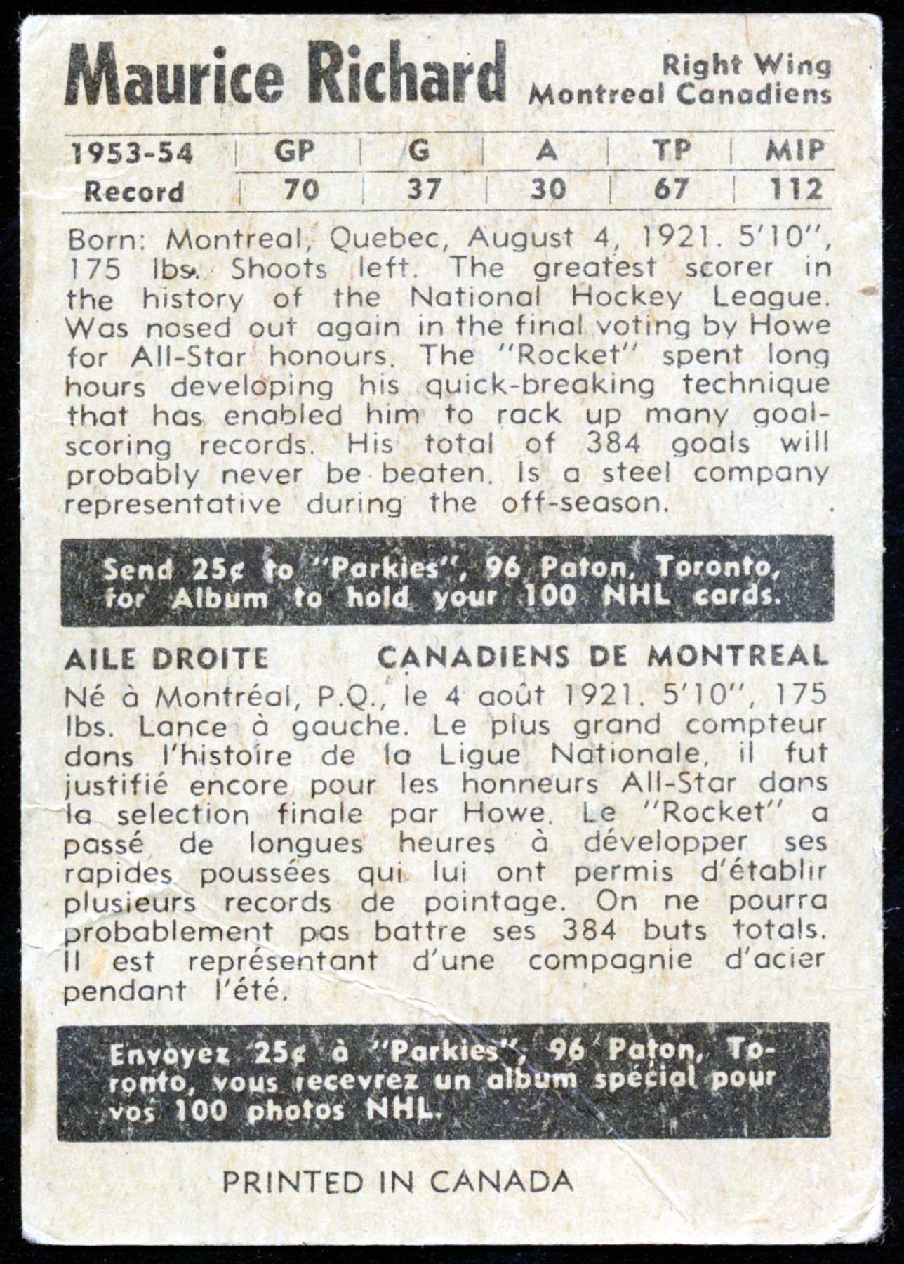 Parkhurst Card from Maurice Richard #9 (1954-55) card # 7.