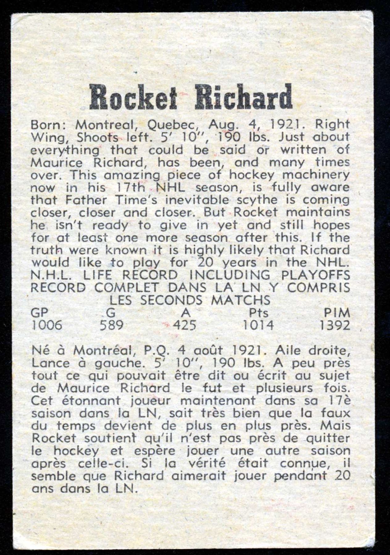 Parkhurst Card from Maurice Richard #9 (1958-59) card # 38.