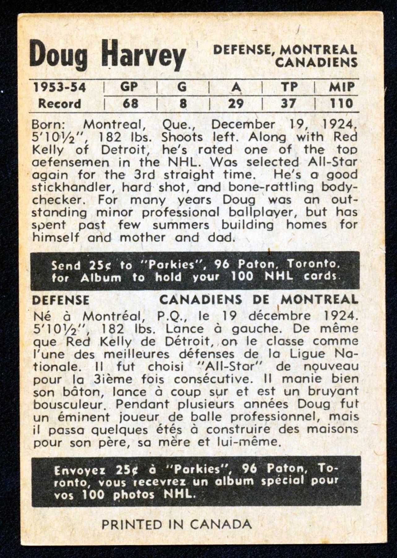 Parkhurst card from Doug Harvey #2 (1954-55) card # 14.