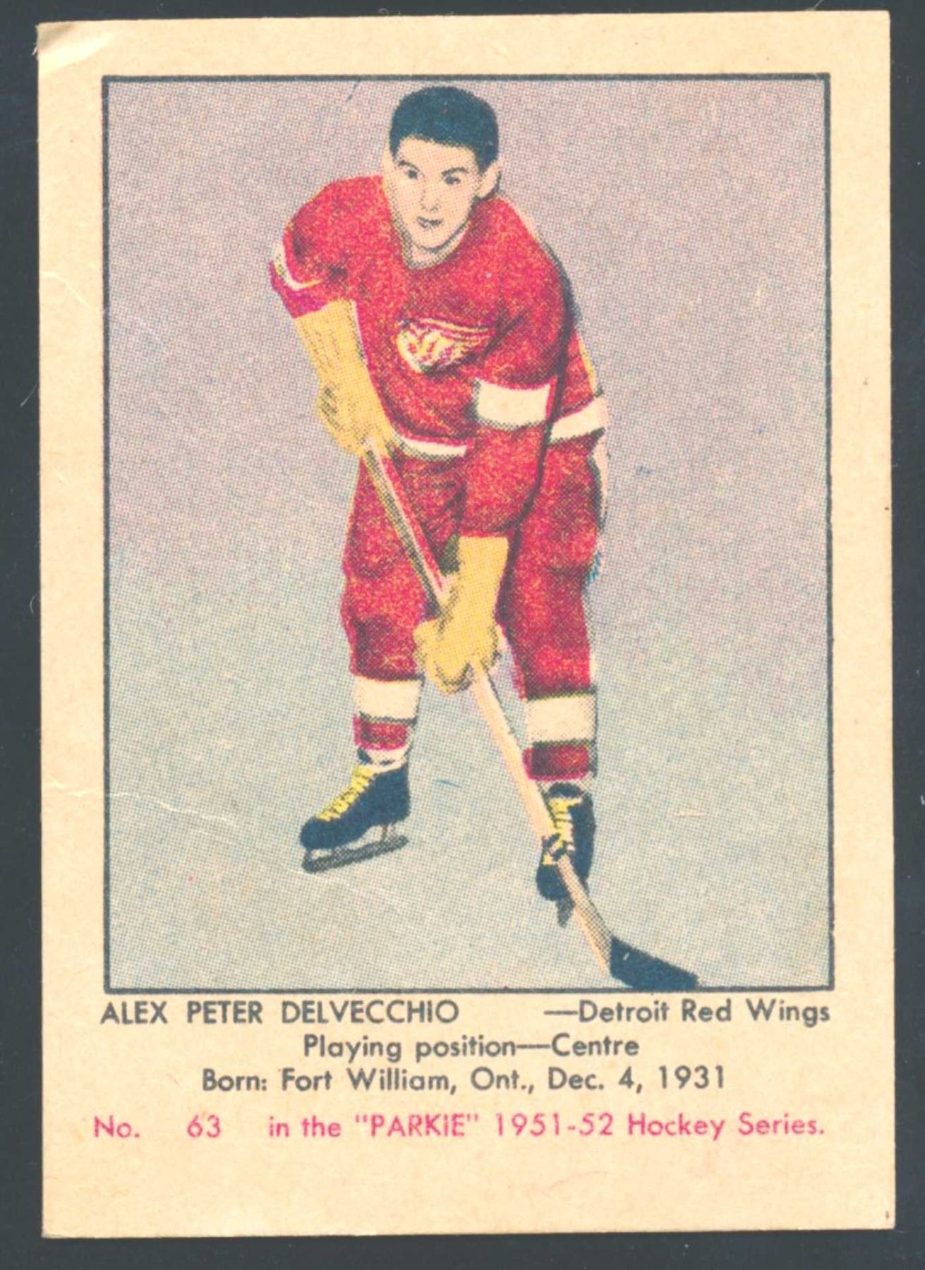 Parkhurst rookie Card from Alex Delvecchio #10 (1951-52) card #63.