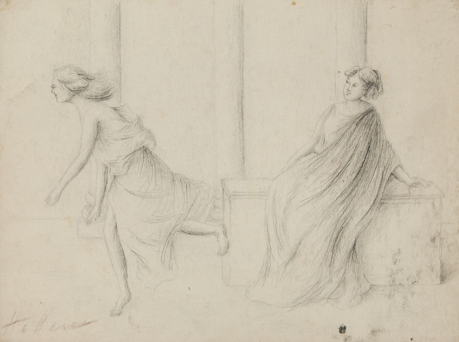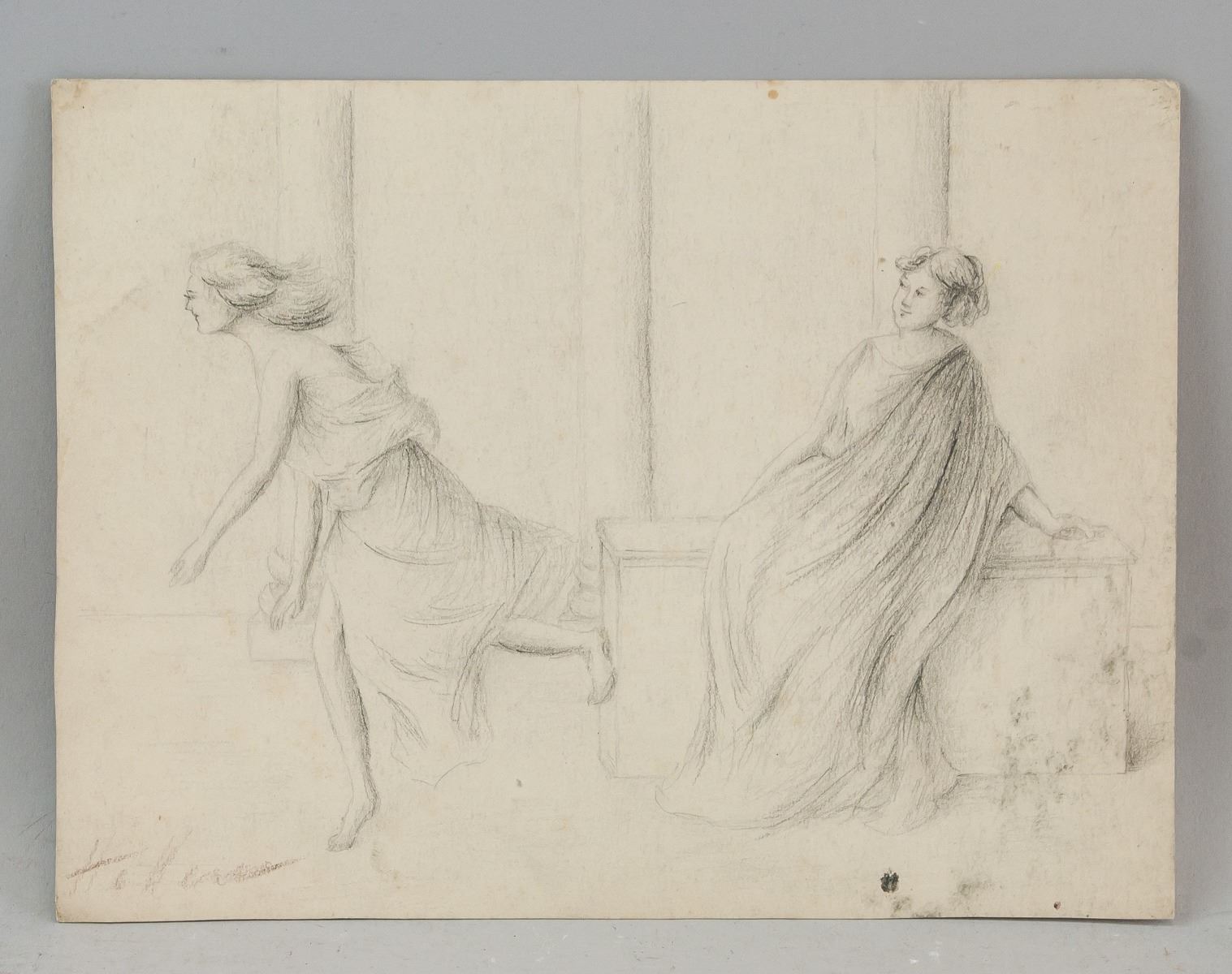 Graphite on paper. Featuring drawing of two women. Signed by the artist on the lower left corner. Scribe in graphite on verso. 18.5 x 24 cm (7.2 x 9.5 inches). Provenance: This lot carries limited provenance from an Upper New York estate