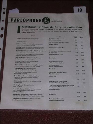 Parlophone EMI catalogue flyer 1964 listing 'Please Please Me' and 'With The Beatles' LPs