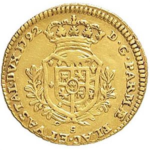 Monete e Medaglie di Zecche Italiane. Parma. Ferdinando di Borbone (1765-1802). Mezza doppia 1792. Mont. 32. R. AU. BB.