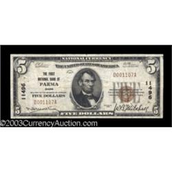 <TABLE cellSpacing=0 cellPadding=0 width="100%" bgColor=#000000 border=0><TBODY> <TR><TD width="100%"><TABLE cellSpacing=1 cellPadding=3 width="100%" border=0><TBODY><TR><TD width="100%" bgColor=#79735c><FONT face=arial color=#ffffff size=3><B>Description</B> </FONT></TD></TR><TR><TD width="100%" bgColor=#ffffff><FONT face=arial size=2><B>Parma, ID</B></I> - $5 1929 Ty. 1 <B>The First NB</B></I> Ch. # 11496<BR>Somewhat unusually, small notes from here are scarcer than large, with only four in the census. Nice <B>Fine-Very Fine.</B></I> (900-1,400 ) </FONT></TD></TR></TBODY></TABLE></TD></TR></TBODY></TABLE><BR><TABLE cellSpacing=0 cellPadding=0 width="100%" bgColor=#000000 border=0><TBODY><TR> Important notice: Heritage usually auctions material at the rate of 200-250 lots per hour. On some occasions eBay Live bid software or the Internet may not be able to keep up with the pace of the auction. We recommend placing a realistic absentee bid now as insurance to avoid disappointment. Occasionally the auctioneer may eliminate or reject an eBay Live bid, and the auctioneer may also reopen a lot after the close of the eBay live bidding (usually because we missed an audience bid), and may reject your bid even if it shows you as the winning bidder. By bidding via eBay Live, you agree that Heritage may award the lot to another bidder at its sole discretion under the circumstances described above or any other reasonable circumstances. Also please note that all Heritage lots purchased through eBay Live carry a 20% Buyer's Premium. Please make sure you read the Terms and Conditions before you bid.</TR></TBODY></TABLE>