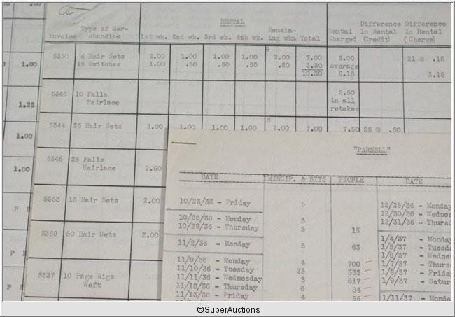 From the Max Factor Files / "Parnell" / Released June 4, 1937 / MGM Pictures / "The life of Irish politician Charles Stewart Parnell, following from 1880 onward his struggle to free his country from English rule." / Starring: Clark Gable, Myna Loy, Edmund Gwenn, Edna May Oliver, Alan Marshal, Donald Crisp and Billie Burke / Folder contains (4) wig rental registers {Max Factor Collection}