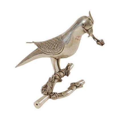 Parrot Bird Figurine - Hand Made Heavily Decorated Parrot Bird Figurine - 17.36 Oz (540 Grams) Approximate "Timeless Treasure" by Shakuntalam Silvercraft.