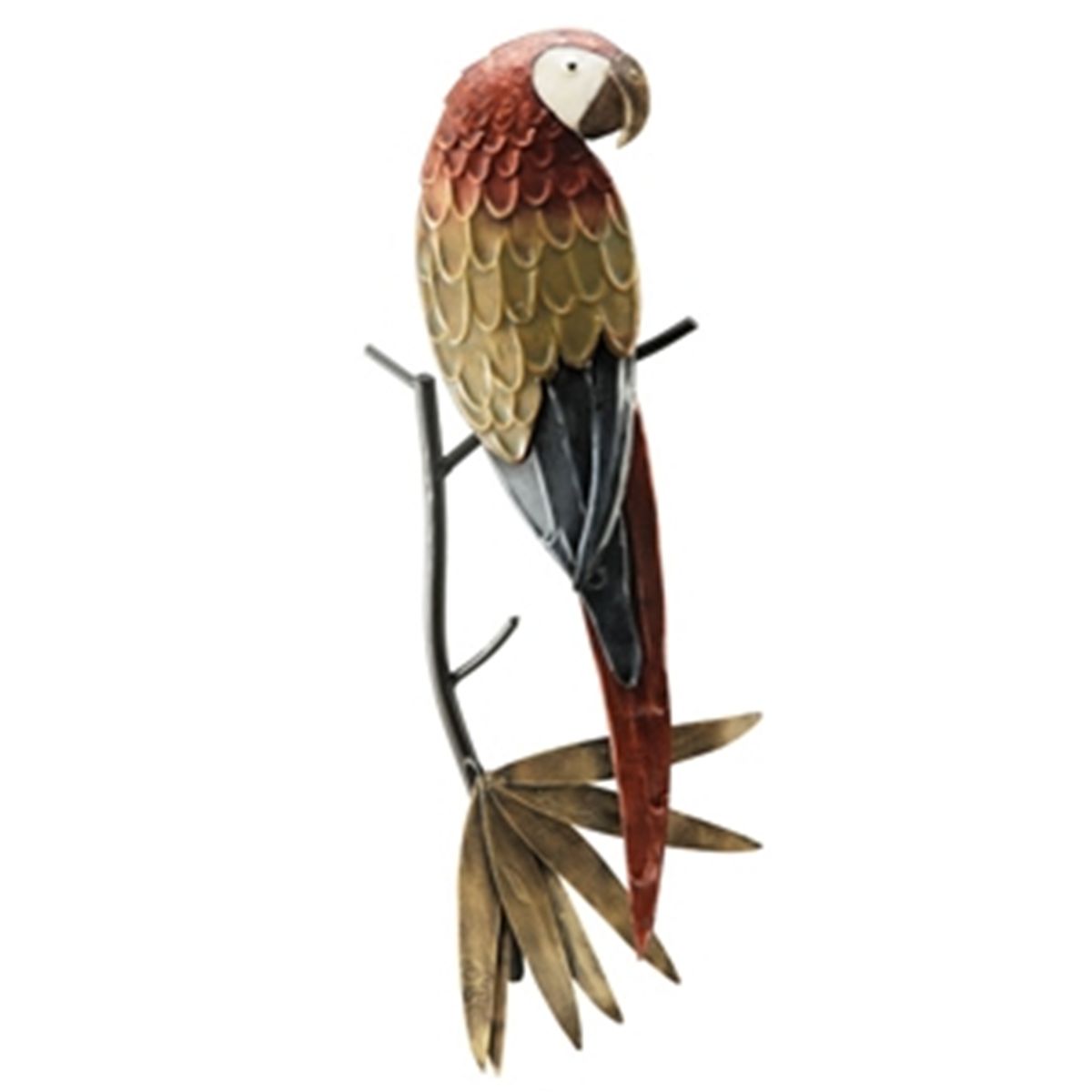 Parrot On Branch Wall Sculpture - 22.5"H 9"W 4"D - Aluminum