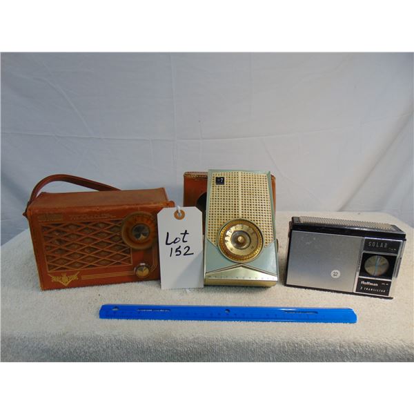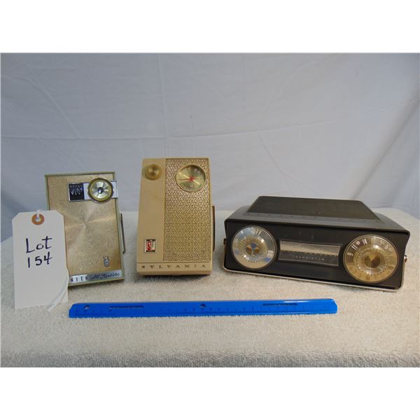 Flat of 2 vintage transistors: 1) Bulova clock radio, very nice; 2) Motorola, model 7X23E