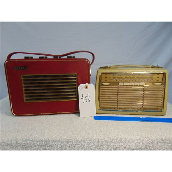 Two items: 1) Shaub-Lorenz "Amigo", model T20K, AM/FM/SW; 2) Hacker-Herald , model RP10, red