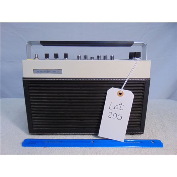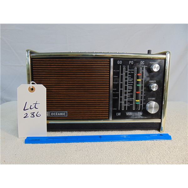 Two items: 1) Shaub-Lorenz AM/FM, nice, but not tested; 2) Panasonic, model RF-8300, multi-band, digital display (this radio works nicely)
