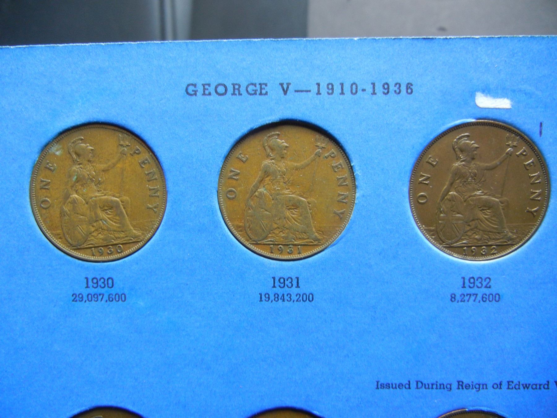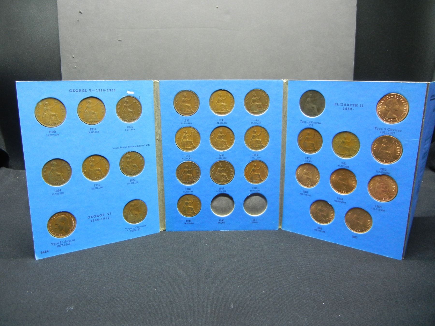 Part set Great Britain Pennies 1930-1966 Missing only 2 coins