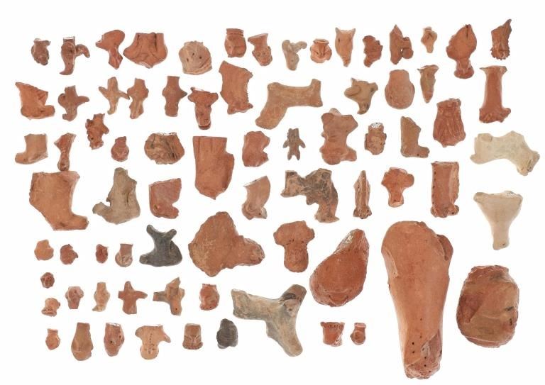 For your consideration this lot includes Seventy+ (70+) Parthian Dynasty Pottery Fragments, circa 2 BC - 2 AD. Procured in Afghanistan, 1969-1972. Provenance: the Owen D. Mort, Jr. Collection. Owen David Mort was an American engineer who amassed an impressive collection throughout his worldwide travels. His collection has included art, artifacts, and other historical items from which he has donated to museums, including the Utah Museum of Fine Arts at the University of Utah and the Snite Museum of Art at the University of Notre Dame. His collection includes Afghan, Indian, Mughal, Parthian, Persian and Far East Asian art and artifacts. Khwaja Khanum is located in the northeast area of Afghanistan, inside the Kushan empire, which from approximately 200 B.C. until 200 A.D. was the furthest east Hellenistic-Greek state. As such, Hellenistic culture greatly influenced the art and culture. Originally, from what is now northeast Iran and southern Turkmenistan, the Parthian Dynasty was a major Iranian political and cultural power in ancient Iran from 247 BC to 224 AD. Fragmentary figures include animals (e.g., camels, elephants, horses), birds, and humans. The largest piece measures 8"L x 2.5"W, and the collective weight is 7lb.*
