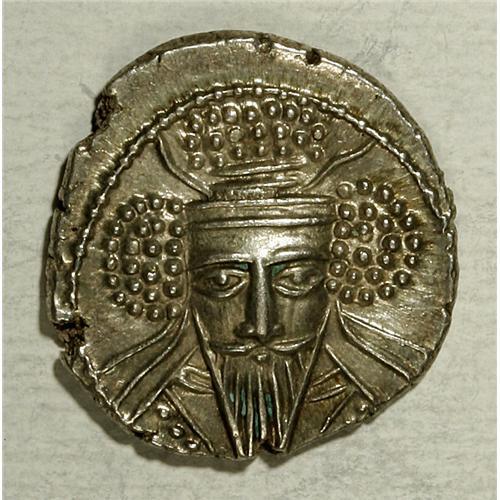 <B>Parthian Kingdom. Vologases V.</B></I> A.D. 191-208. AR Drachm (18 mm, 3.84 g). Ekbatana. Diademed bust facing, hair in bunches, beard composed of long vertical lines / Archer seated right, holding bow; monogram below bow. Sellwood 86.3; Shore 448. <B>XF,</B></I> reverse off center.<BR><BR><b>Shipping:</b> Coin/Currency (<a target="_blank" href="http://www.heritageauctions.com/common/shipping.php">view shipping information</a>)