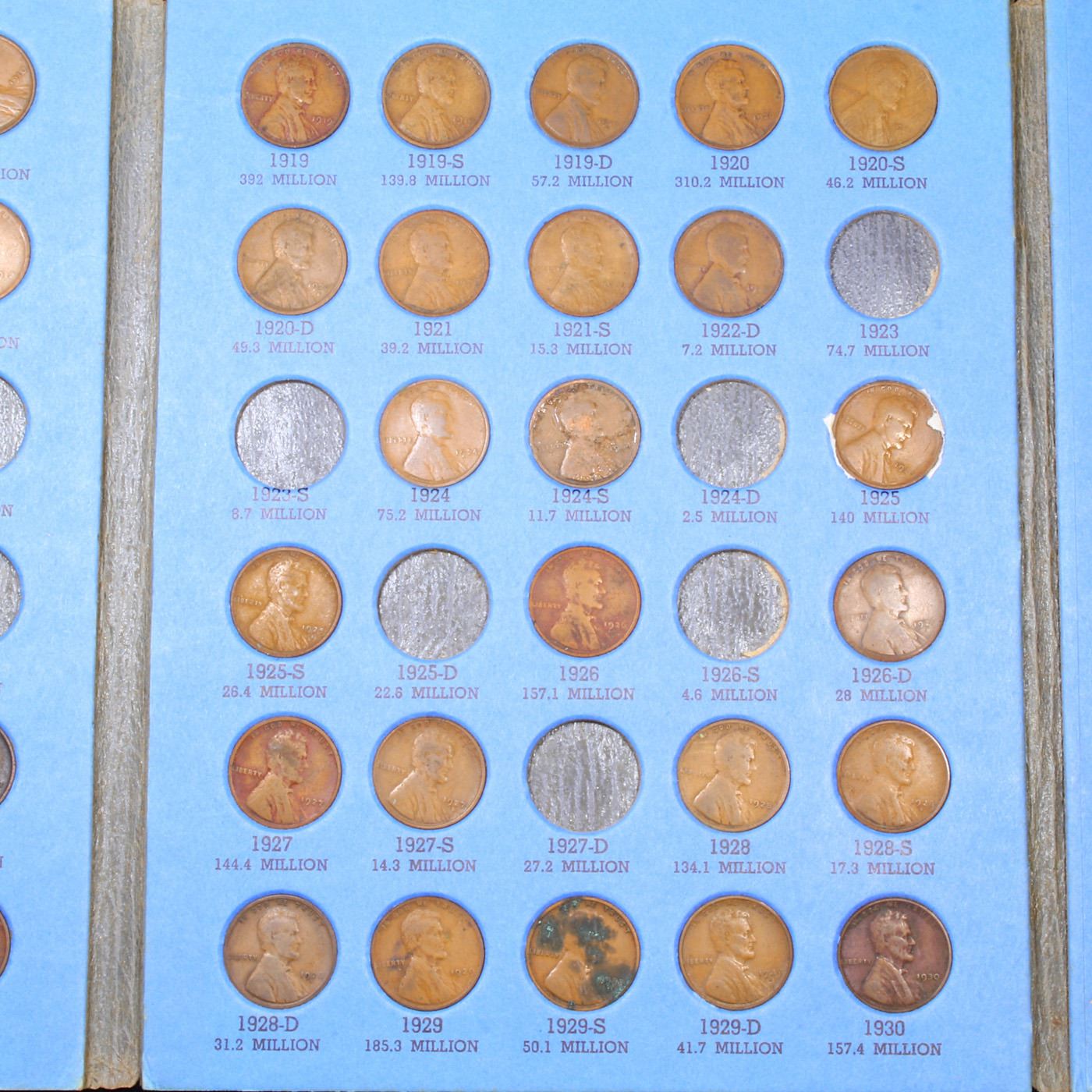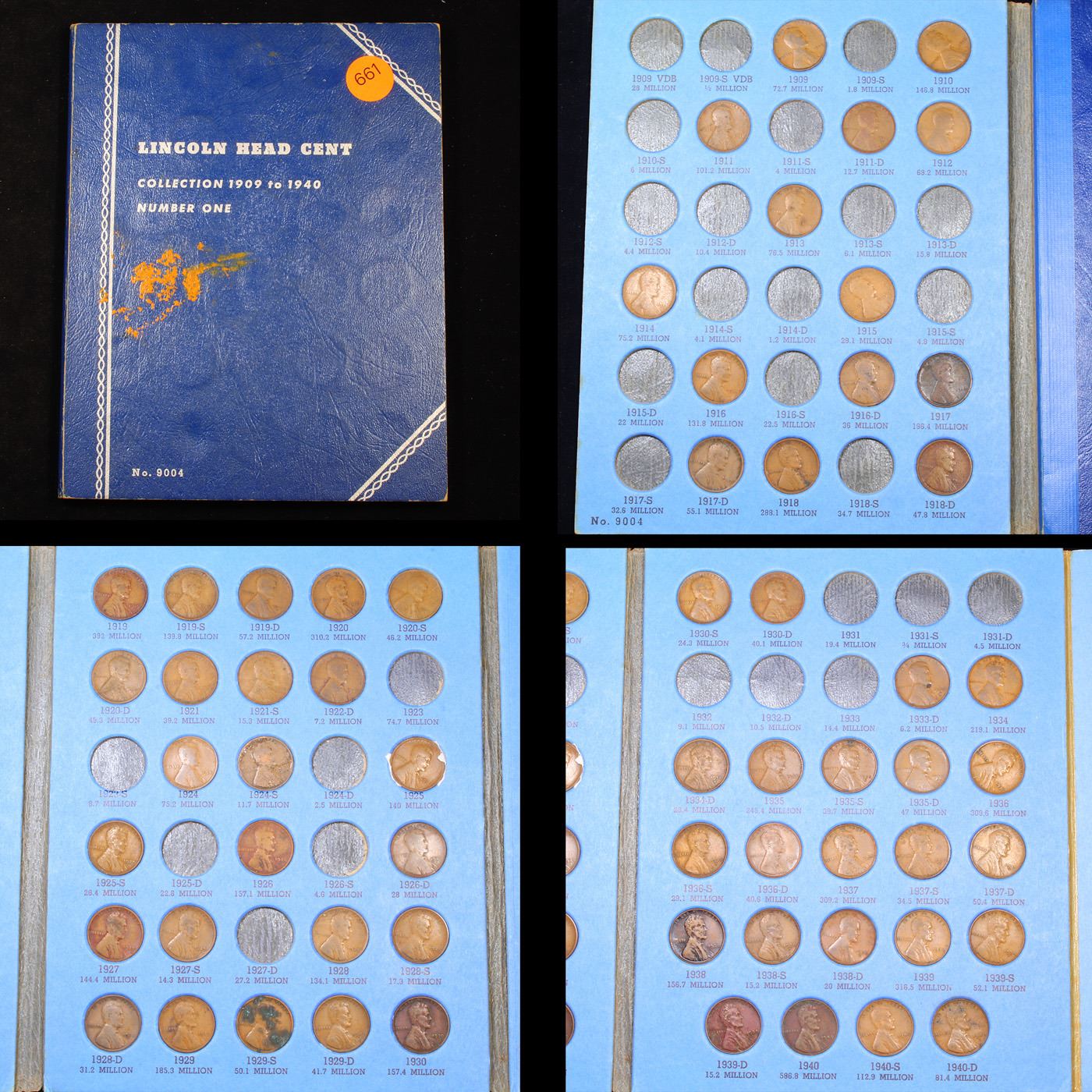 Partial 1909-1940 Lincoln Cent Book 61 coins. 17 Coins from 1909-1919 Includes the 11-d. Contains 61 coins. In a Nice Whitman Folder