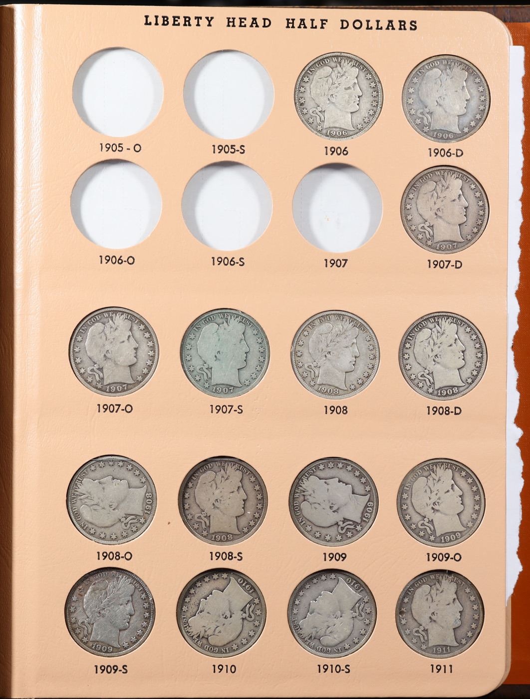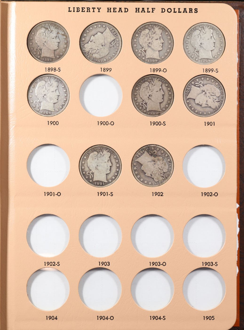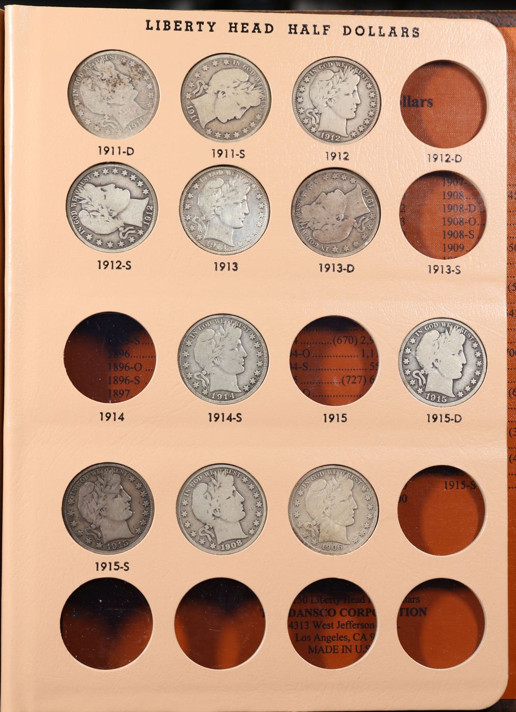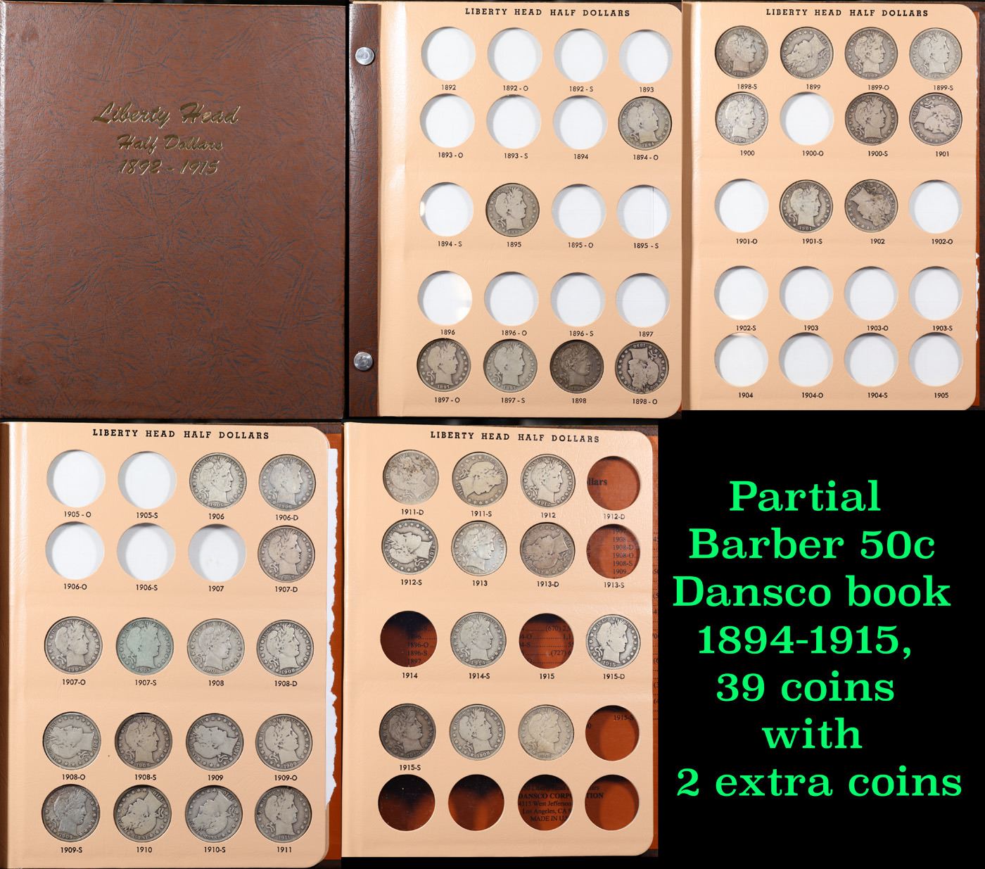 Partial Barber 50c Dansco book 1894-1915, 39 coins with 2 extra coins