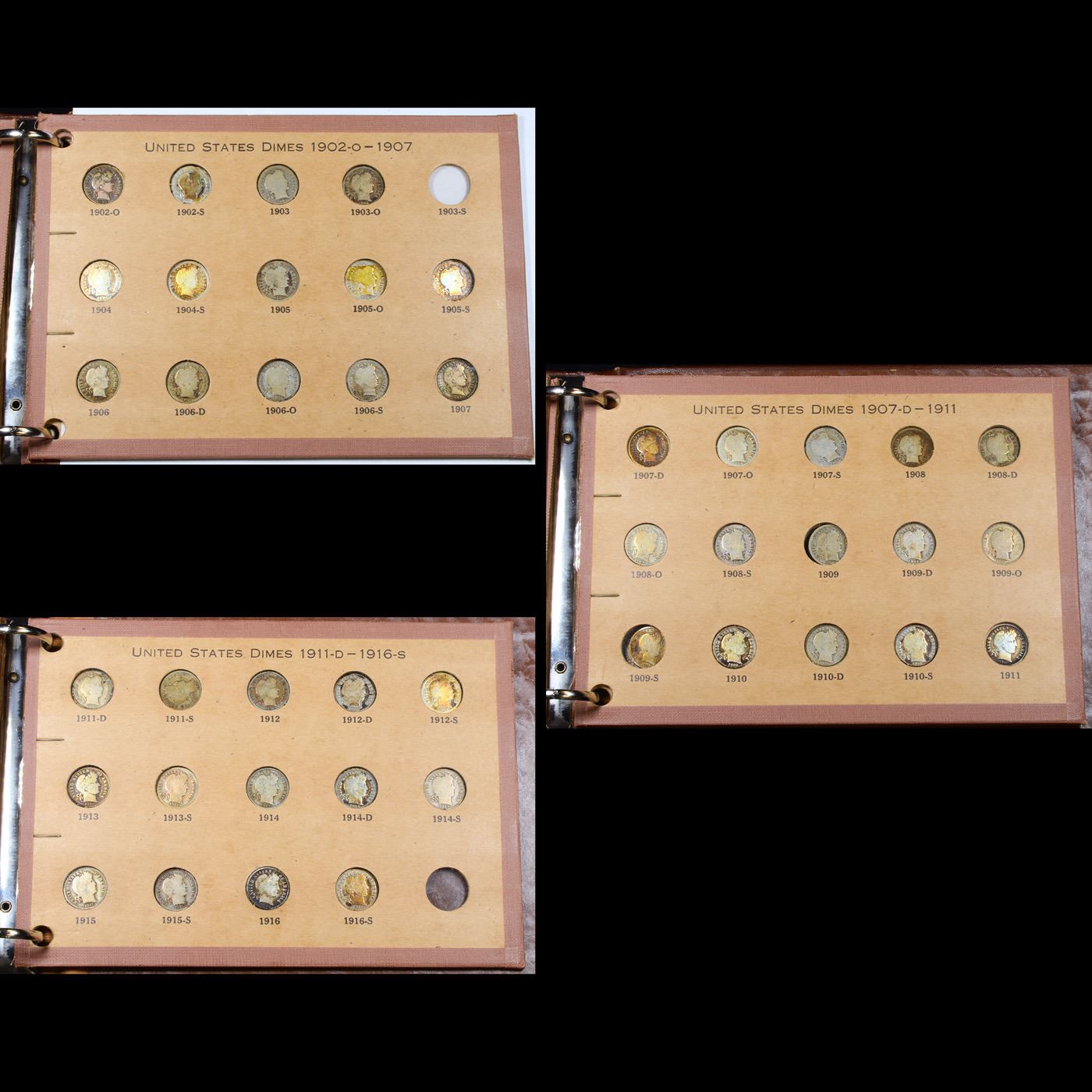 Partial Barber Dime Book 1892-1916 67 coins Grades. A Nice near Partial Barber Dime Book. Dates included are 1892-1916 An Excellent grouping of 67 coins. All Original barber Dime Set All Toned. Includes The Rare 1892-o, 1893-o, 1894-p, 1895-s, 1897-o, 1898-o, 1901-s, 1904-s, 1913-s. it is worth noting that the above listed coins trend Over $500 Alone
