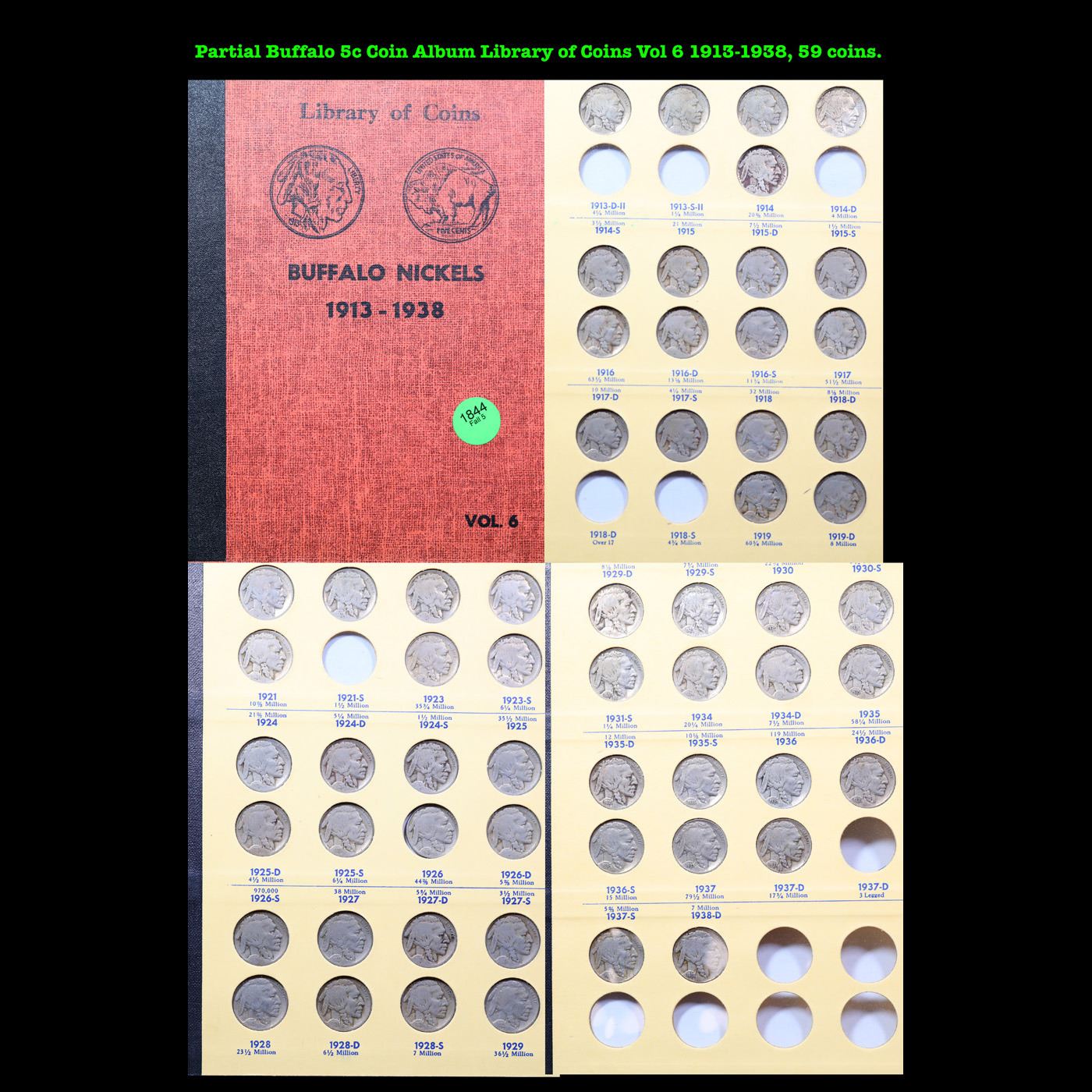 Partial Buffalo 5c Coin Album Library of Coins Vol 6 1913-1938, 59 coins.. A nice Library of Coins Vol 6 Liberty Buffalo Nickle Album. Date range from 1913-1938. A fantastic grouping of 59 coins.