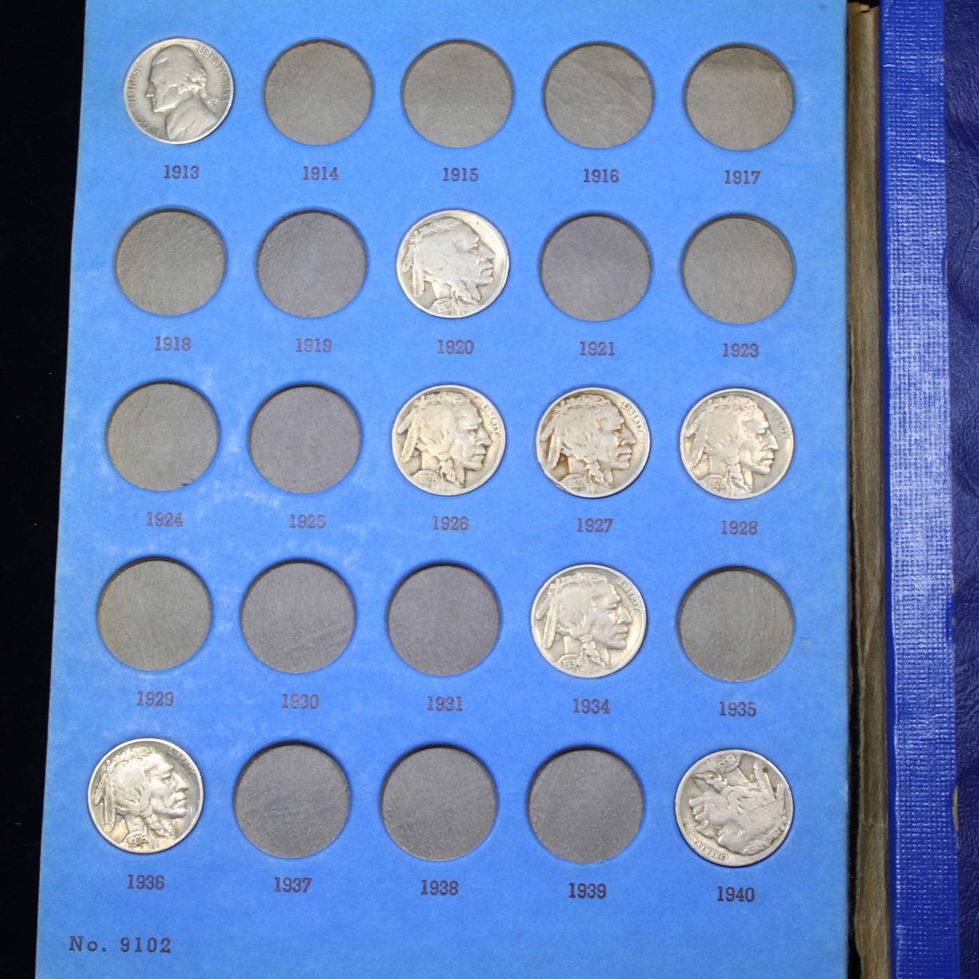Partial Buffalo & Jefferson Nickel Book 1920-1966 26 coins. A excellent Partial Buffalo & Jefferson Nickel Book. Dates Included range from 1920-1966. An Excellent grouping of 26 coins.